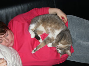 een dolle. Ze kon uren met Kim op de bank liggen knuffelen.